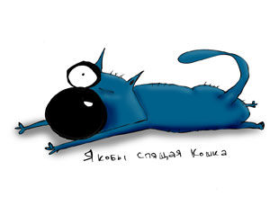 этот кот в отличии от первого экземпляра синего цвета, и это явственно говорит нам о том что либо кот мертв, либо он перепил алкогольной продукции. я склоняюсь ко второму варианту, тк вся его неестественная поза, в которой он якобы спит,и не закрывшийся автоматически правый глаз точно указывают на то, что кот просто насинячился в усмерть.
