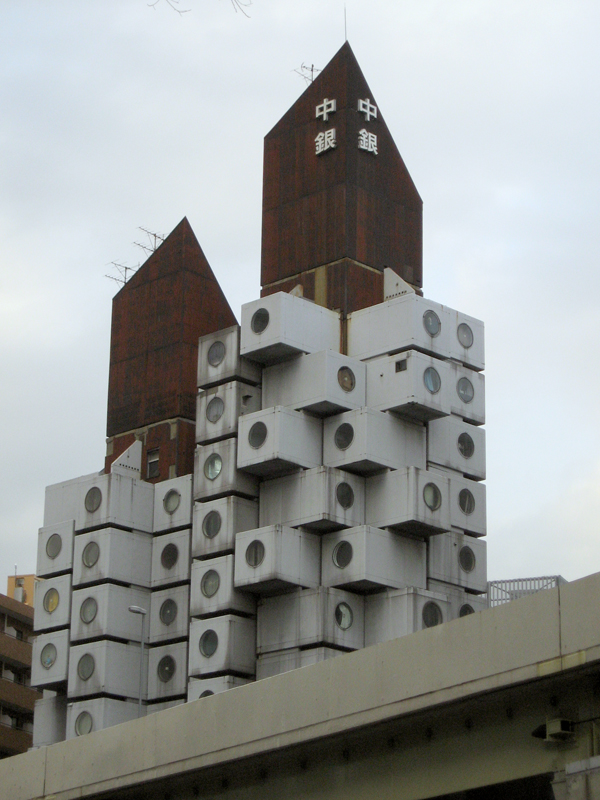 Оказалось, что это очень известное здание уже культового архитектора Кисё Курокава - капсульный отель Накагин.