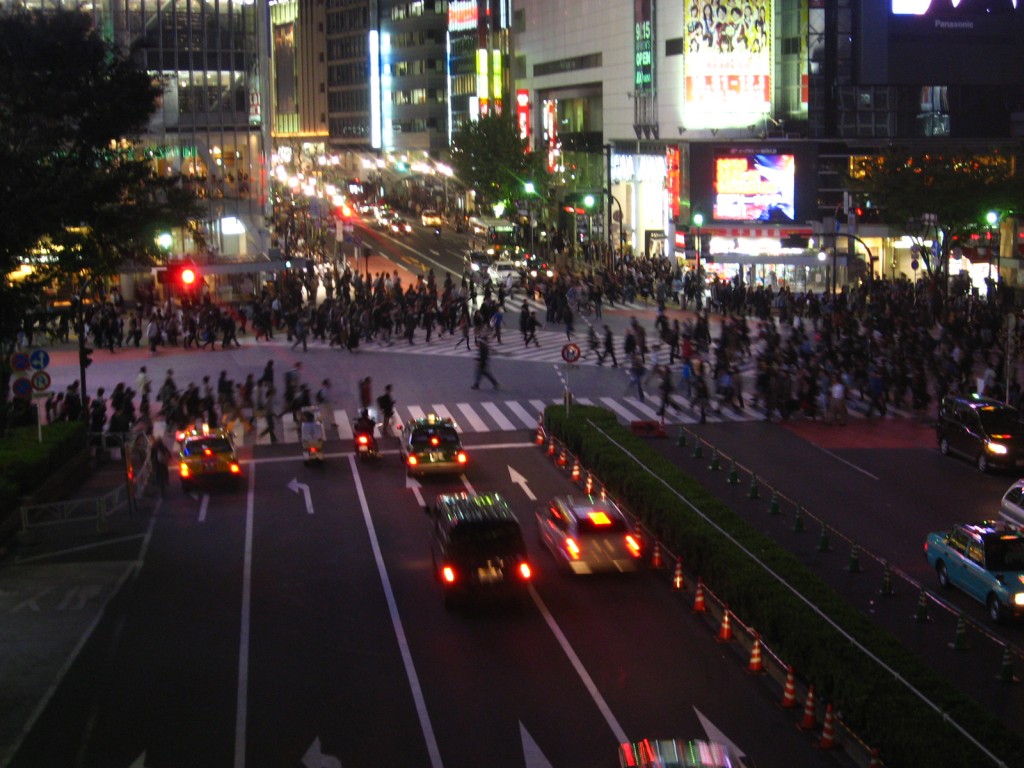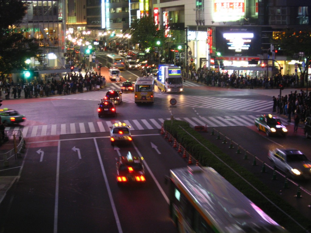 Один из самых больших и оживленных перекрестков у станции Сибуя. Во-первых, Сибуя - Огромный транспортный узел, где сходятся линии пригородных электричек, городского метро и автобусов. Ежедневно этой станцией пользуется полмиллиона человек. Во-вторых, здесь очень много универмагов, модных бутиков, ресторанов. Это к тому же — один из наиболее популярных центров ночных развлечений. Итого: