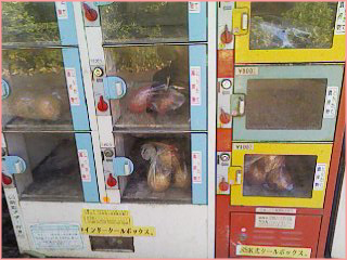 Тут же и продают: опускаешь туда монетки, дверцы открывается ↑. Дороговато: кочан капусты 60р