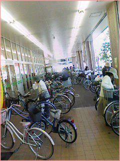 Тут все на велосипедах. Особенно в местах подальше от центра - доехать на автобусе до станции метро\электрички стоит 60р. Вот и ездят все кому не лень: старички (причем под 90), сарариманы (salary man - менеджеры по-нашенски) в костюмах, модные (насчет моды в следующих выпусках) девахи в длинных юбках и на каблучищах, мамаши с двумя детьми и тд. Кроме того, во время поездки говорят по телефону, а если идет дождь, то и держат зонтик. Получается практически без рук...