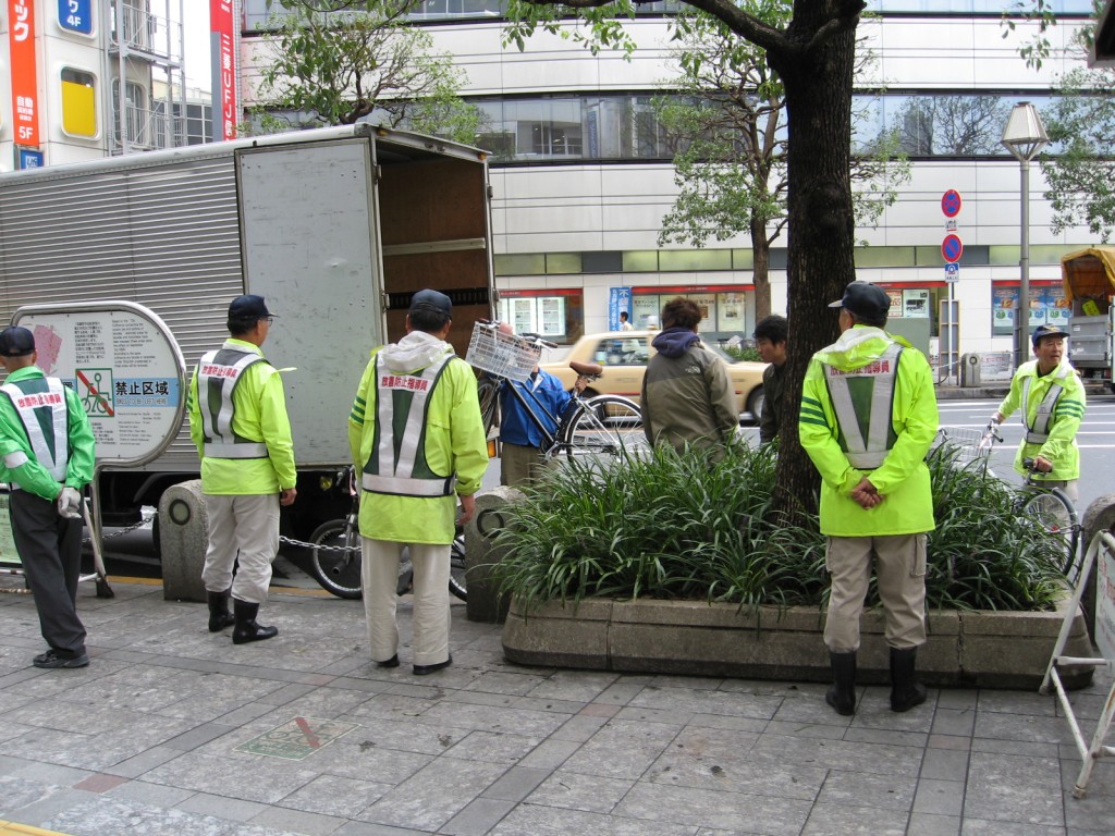 Смотрите, сколько злодеев собралось! Увозят беззащитные велосипеды!!! Ну прямо обидно. В кои-то веки в японцах заткнулась их педантичность и законопослушность, как им тут же стучат половником по чайнику.