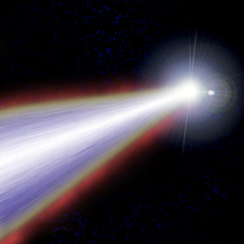 Теперь дублируем слой с синим шариком. Скрывае слои с первым электроном и его хвостом. Создаём новый слой и способом, описанным выше, рисуем хвост для этого электрона. Ниже я показал, что уменя получилось. Также на рисунке ниже я показал расположение электрона на каждом кадре. (без хвостов, чтобы было понятней ).