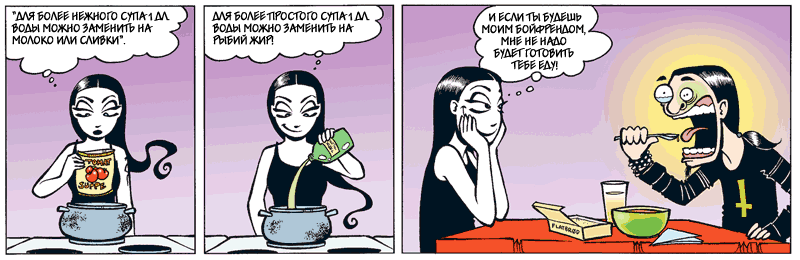 Она находчива, ленива, непостоянна и не блондинка. К тому же вегетарианка, обладает даром убеждать детей, но при этом ее нельзя назвать хорошим педагогом, обожает фэнтези и долгий утренний сон.