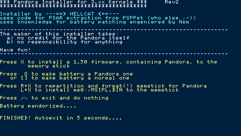 2) Для второго способа нужна любая PSP с модифицированной прошивкой. Создание карты Пандоры осуществляется средствами программы непосредственно на PSP.