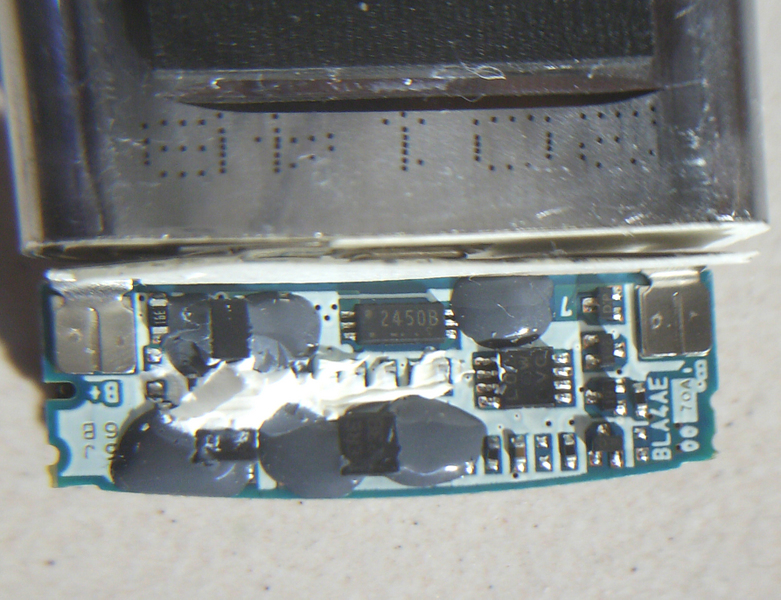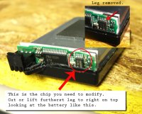 Немного позже выяснилось, что добиться желаемого эффекта можно не только программным, но и физическим путем. Причем как на Толстых батареях, так и на Тонких. Достаточно перерубить один контакт нужной микросхемы, как мы получим вот такую батарею:
