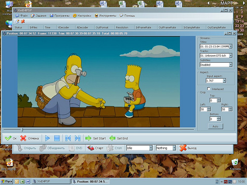 XviD4PSP 4.1.115]. Данный конвертер позволяет использовать на входе практически любое видео и обрабатывать его согласно нашим нуждам. Запускаем XviD4PSP, открываем в нем исходное видео и в появившемся окне за счет обрезки картинки либо по бокам, либо сверху и снизу добиваемся соотношения сторон примерно 1.77:1.