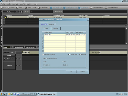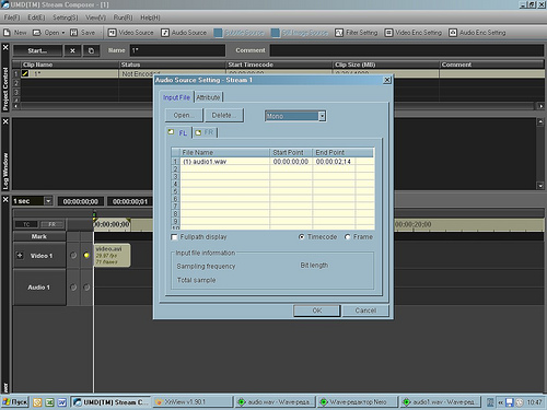 5) Создать новый проект в официальном редакторе UMD Stream Composer, загрузить в него созданные ранее аудио и видео файлы и сконвертировать их в формат MPS.
