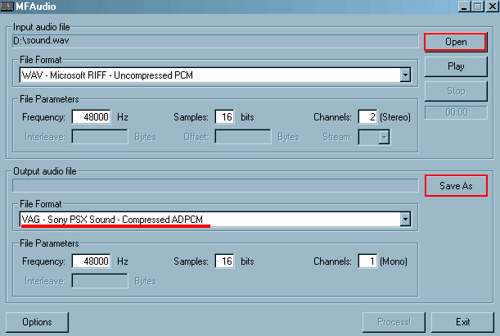 [MFAudio] – простой и удобный конвертер WAV <-> VAG и не только.