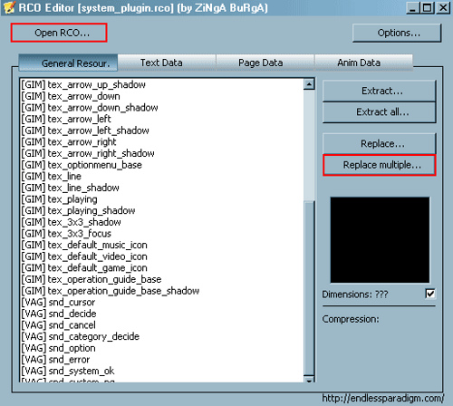 Rco Editor, открыть в нем скаченный ранее файл system_plugin.rco и нажать на кнопку Replace multiple.