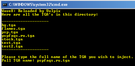 Теперь остается только сохранить файл как TGA с любым именем в папке с программой WaveX. Там уже есть те несколько файлов, которые я приводил в пример. Далее запускайте файл start.bat, набирайте название вашей текстуры, включая расширении (например, my_wave.tga) и жмите энтер, а через несколько секунд пробел.