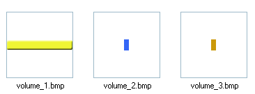 На данном примере я хочу показать вам приемы для изменения позиций и размеров значков, поэтому не буду просто перекрашивать стандартный вариант, а подготовлю совершенно другой вариант шкалы громкости. В моем случае это будет желтый прямоугольник 224х32, синяя полоска 7х16 и коричневая полоска 7х16: