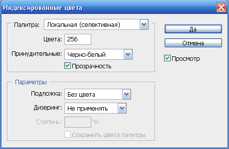 4) Изображение – Режим – Индексированные цвета. Настройки как на скриншоте: