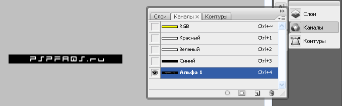 272х80 для файла tex_psp_logo) и закрасить его тем цветом, которого вы хотите видеть надпись. Я для примера закрасил его желтым. Теперь переходите на вкладку Каналы и добавляйте новый канал Альфа1.